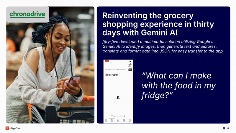 Consider, for instance, fifty-five’s recent work with Chronodrive, a grocery shopping and delivery app. We used AI to address a common user challenge (and, frankly, near-universal issue): deciding what to make for dinner.