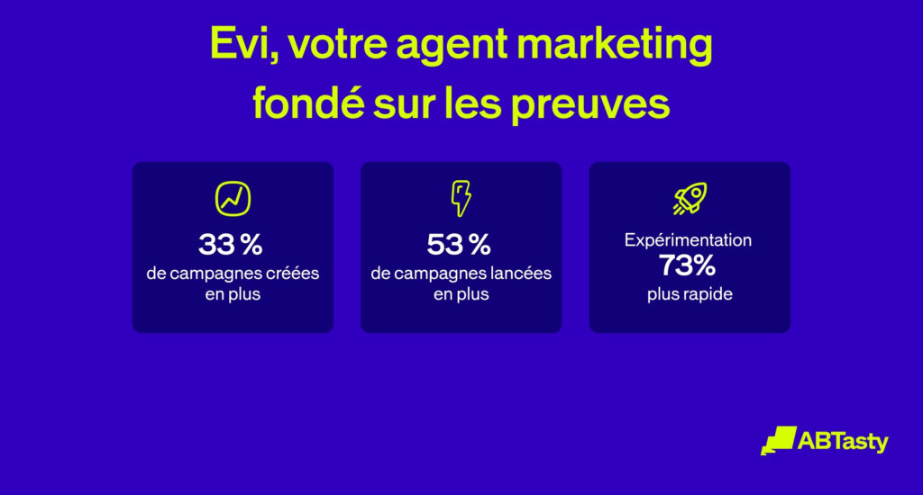 Evi est l’agent marketing alimenté par l’IA d’AB Tasty, conçu pour prendre des décisions fondées sur des preuves. Il transforme des données complexes en stratégies claires et exploitables pour obtenir des résultats reproductibles et mesurables, garantissant ainsi que chaque mesure que vous prenez repose sur des éléments factuels.