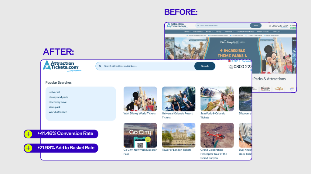 Despite a robust offering, Attraction Tickets identified a key area for improvement: the search experience.